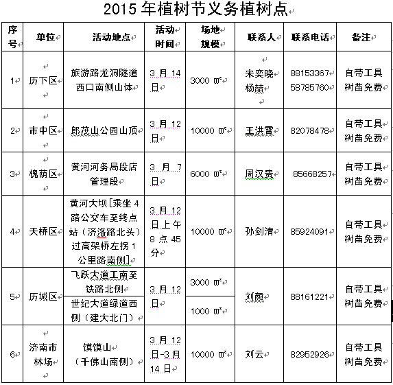 3月5日傍晚,记者通过济南市园林部门了解到,该部门在市区开辟了8处植树点,供市民免费植树(如果是景区则收取门票费,非景区则无任何费用),参与到爱绿护绿的队伍中来。